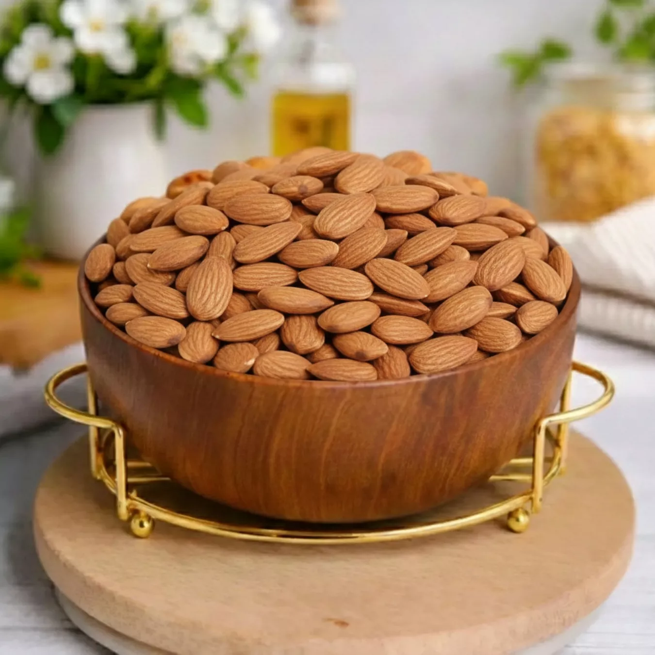 Almonds naturally provide protein, healthy fats, fiber, and essential minerals that support daily nourishment. They are commonly eaten on their own, soaked overnight, or added to breakfast dishes, desserts, and beverages. Because of their balanced nutritional profile, almonds are often included in regular diets for sustained energy and fullness.