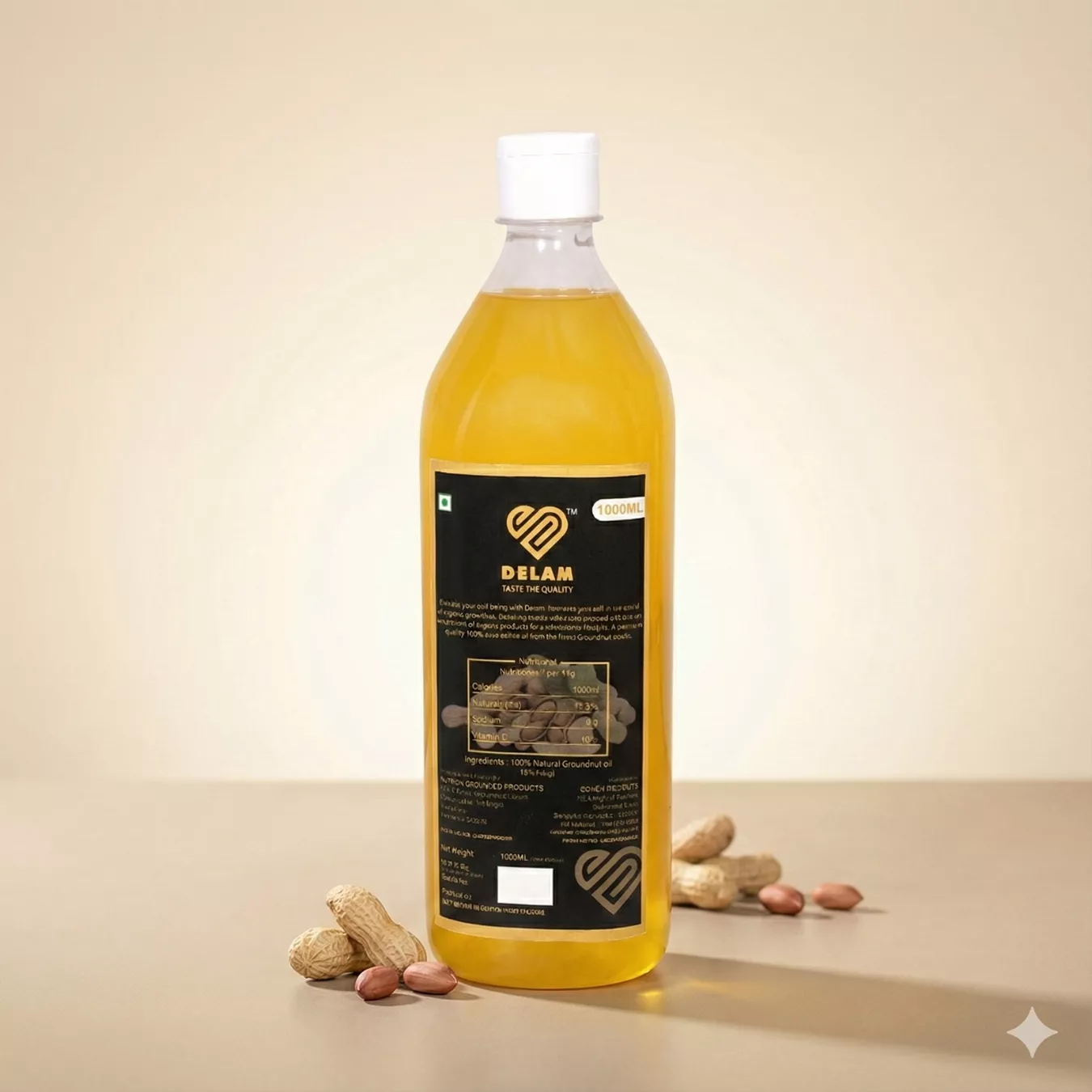 Seven Delights Groundnut Oil is a premium quality cold-pressed oil made from carefully selected groundnuts. It is 100% pure and chemical-free, giving you a natural taste and aroma in every drop.